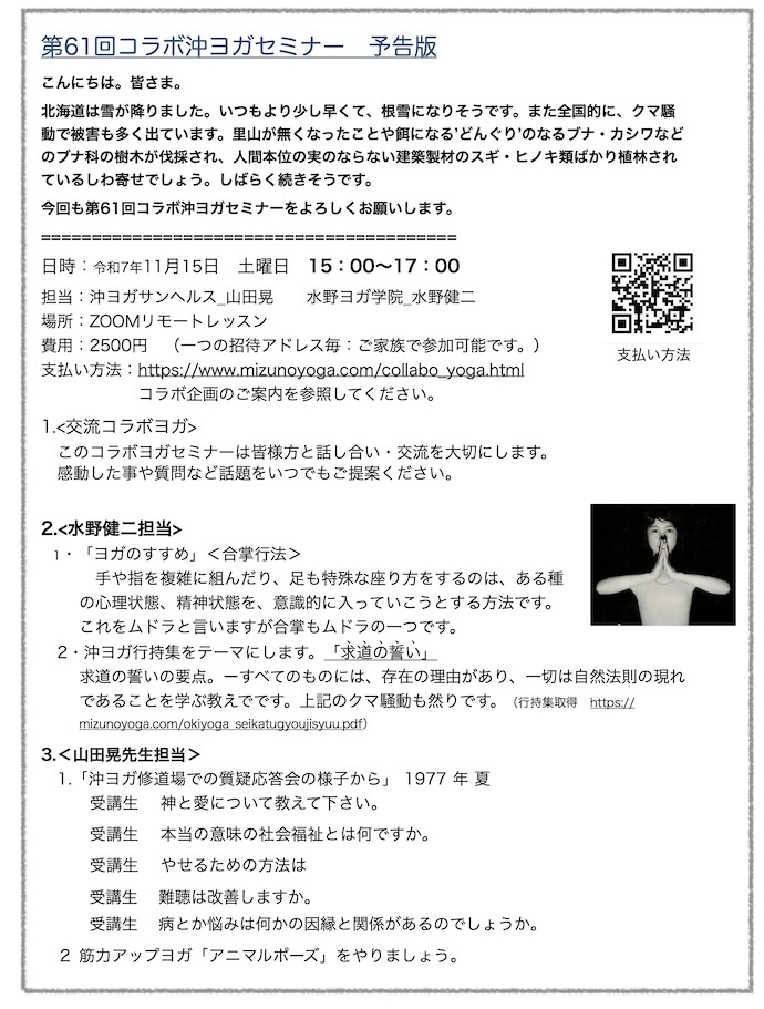 ◯第62回コラボ沖ヨガセミナーのお知らせ